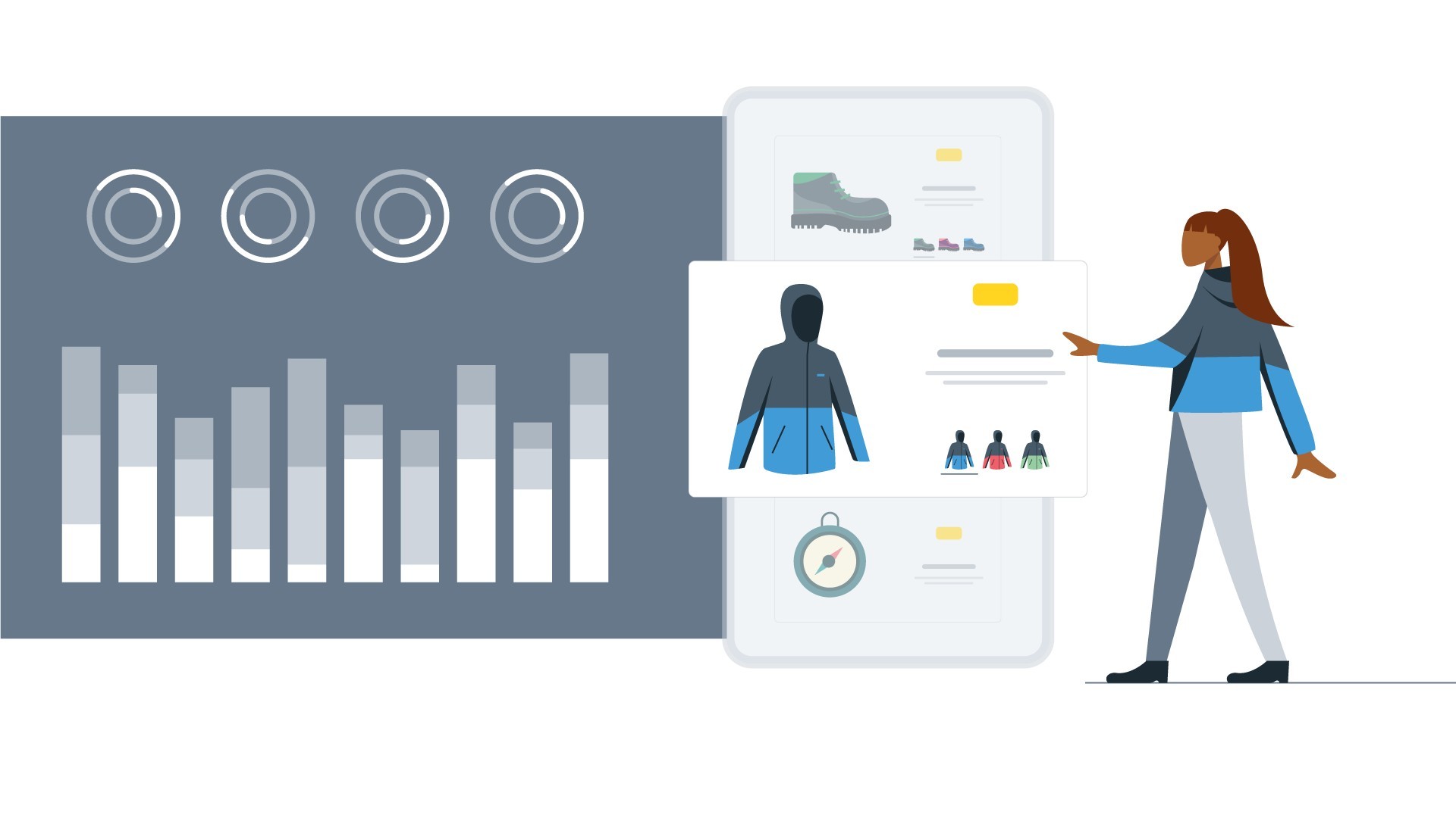 Custom charts, graphs and compositional layouts were developed from scratch for each module — designed to communicate data clearly while remaining visually cohesive with the illustration style. Every element was sketched, refined and approved in direct collaboration with Meta's team.