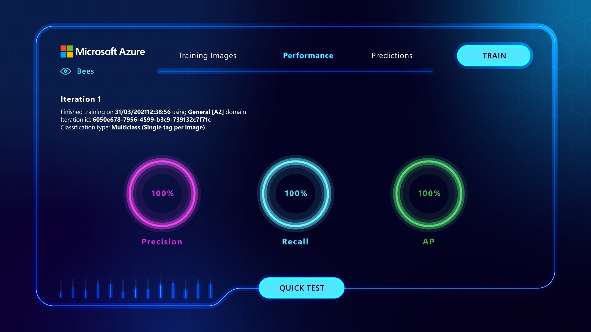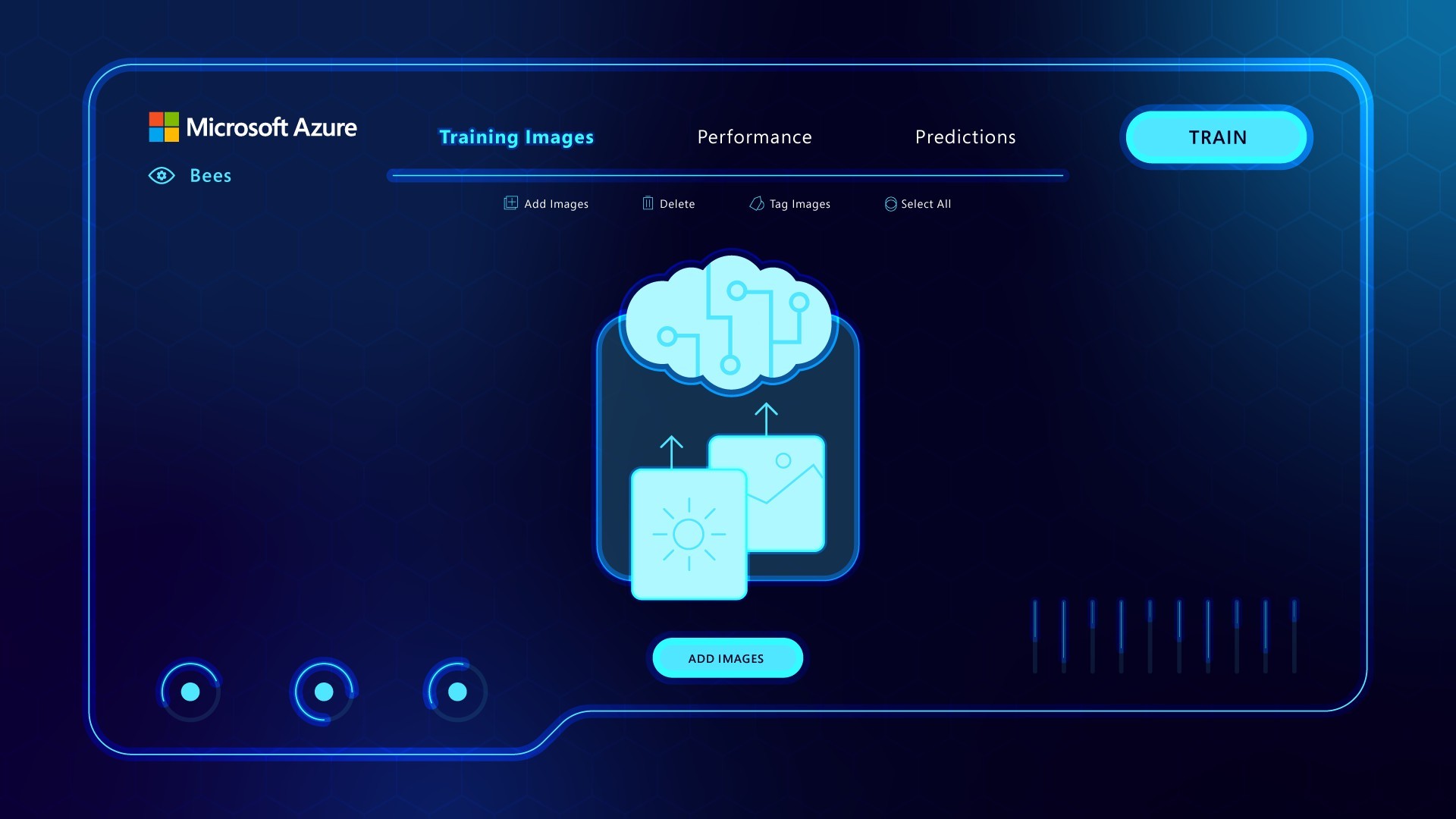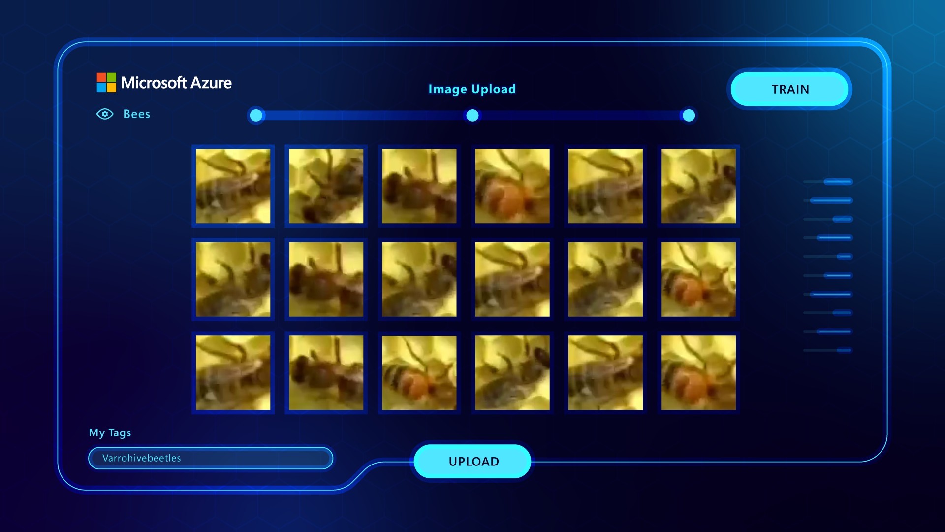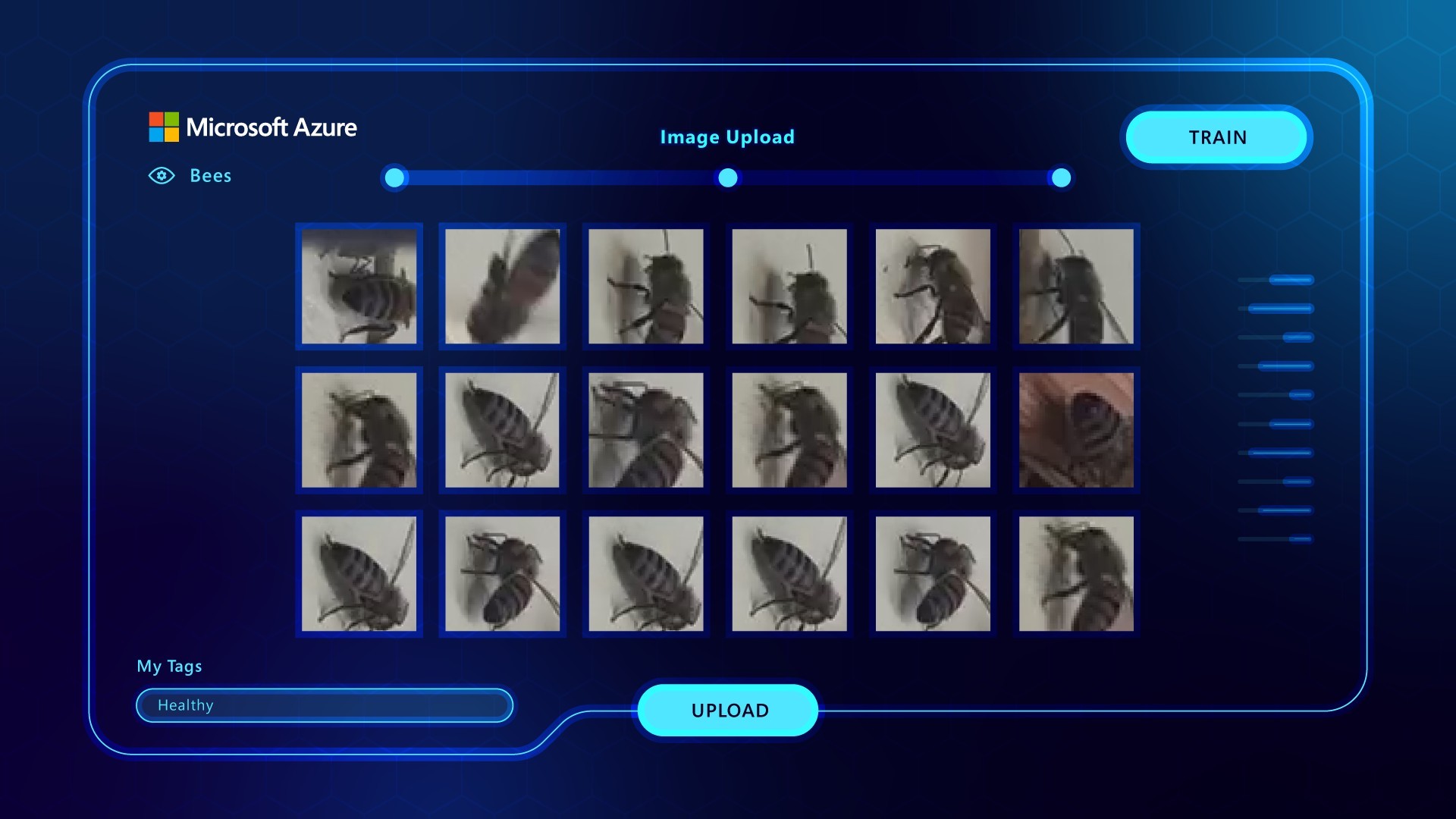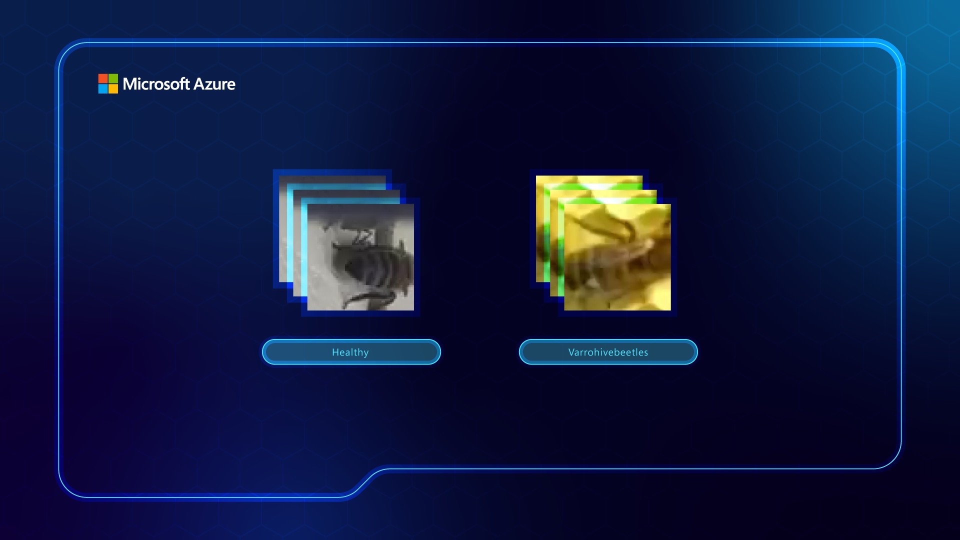 Design the platform UI frames for Microsoft Azure's Custom Vision interface as part of a mixed-media developer campaign — showing how Azure AI technology can be used to detect bee health at scale, making complex technology feel accessible, purposeful and human.