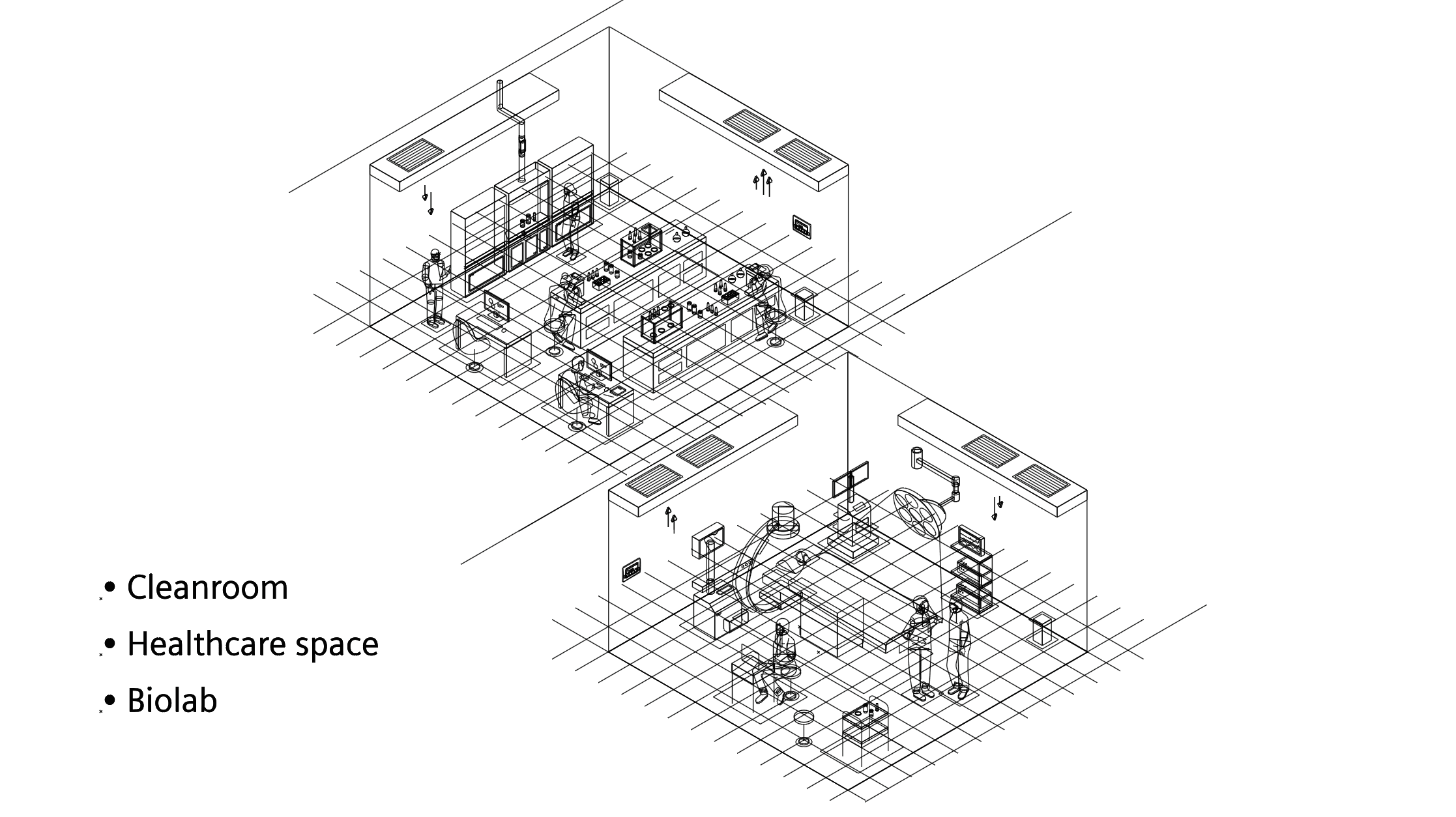The process began with deep research into critical environment systems — biolabs, cleanrooms, healthcare isolation and operating rooms, semiconductor facilities. Understanding how these spaces actually function was non-negotiable before a single scene could be storyboarded.
